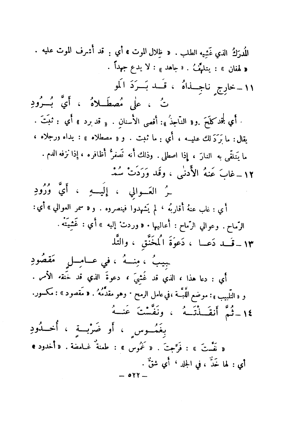 أي: دعا هذا، الذي قد غشي، دعوة الذي قد خنقه الأمر. و"التلبيب": موضع اللبة، في عامل الرمح. وهو مقدمه. "مقصود": مكسور.