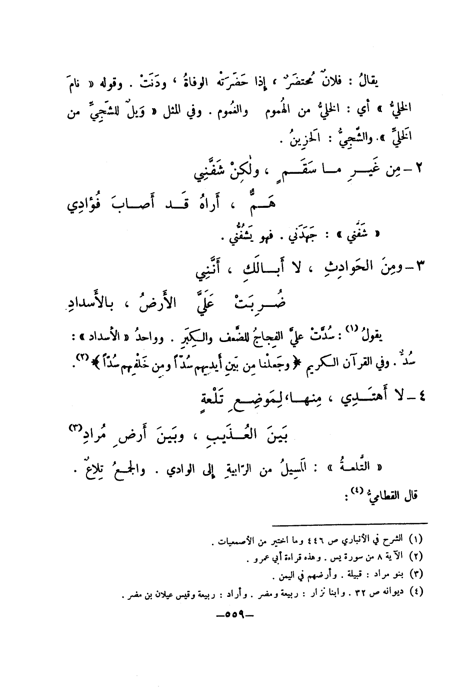 4 ... لا أهتدي، منها، لموضع تلعةٍ