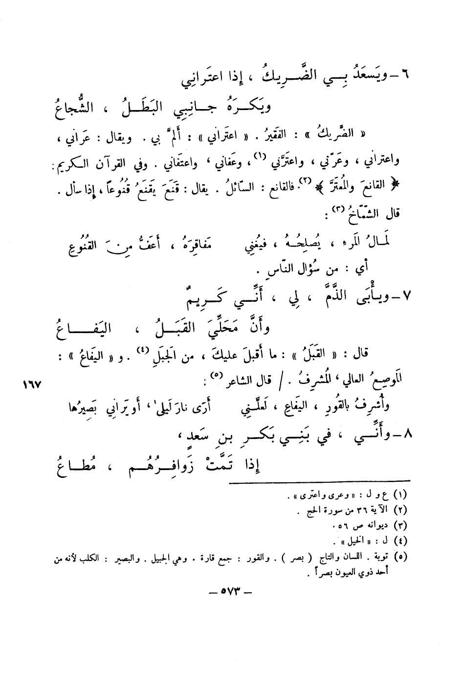 "الضريك": الفقير. "اعتراني": ألم بي. ويقال: عراني، واعتراني، وعرني، واعترني، وعفاني، واعتفاني. وفي القرآن الكريم: (القانع والمعتر) . فالقانع: السائل. يقال: قنع يقنع قنوعاً، إذا سأل قال الشماخ: