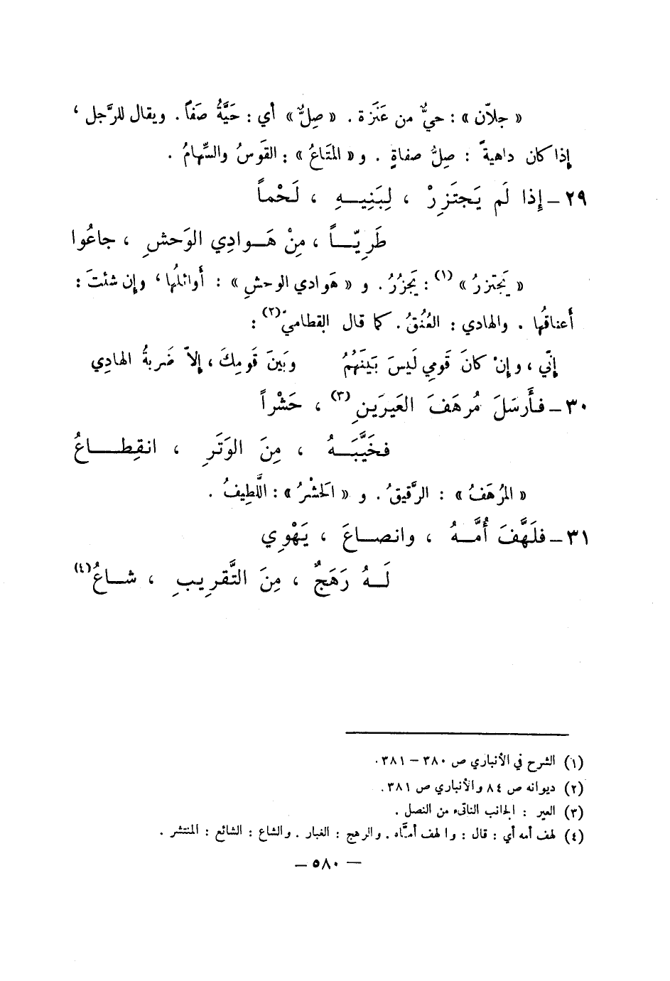 "يجتزر": يجزر. و"هوادي الوحش": أوائلها، وإن شئت: أعناقها. والهادي: العنق. كما قال القطامي: