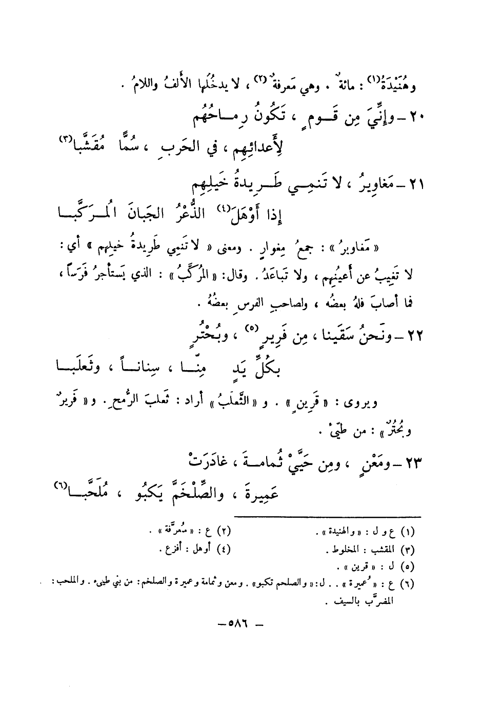 "مغاوير": جمع مغوار. ومعنى "لا تنمي طريدة خيلهم" أي: لا تغيب عن أعينهم، ولا تباعد. وقال "المركب": الذي يستأجر فرساً، فما أصاب فله بعضه، ولصاحب الفرس بعضه.