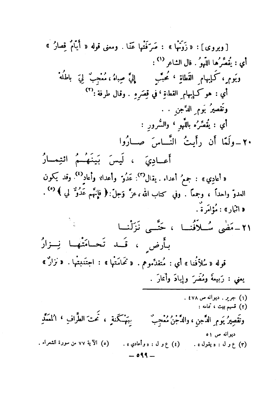 [ويروى] : "زوتها": صرفتها عنا. ومعنى قوله "أيام قصار" أي: يقصرها اللهو. قال الشاعر: