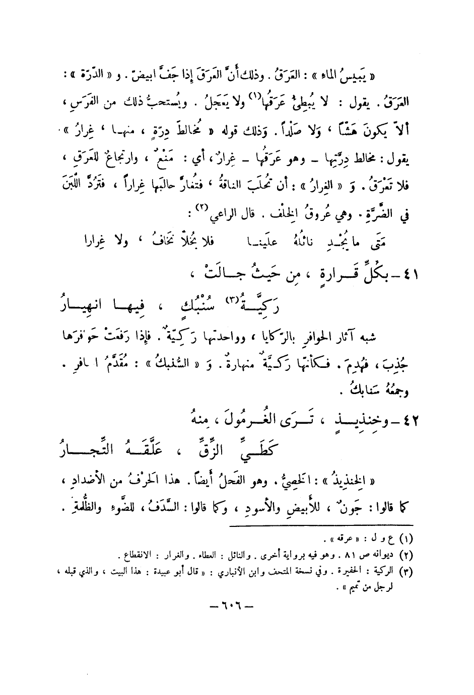 "الخنذيذ": الخصي. وهو الفحل أيضاً. هذا الحرف من الأضداد، كما قالوا: جون، للأبيض والأسود، وكما قالوا: السدف، للضوء والظلمة.
