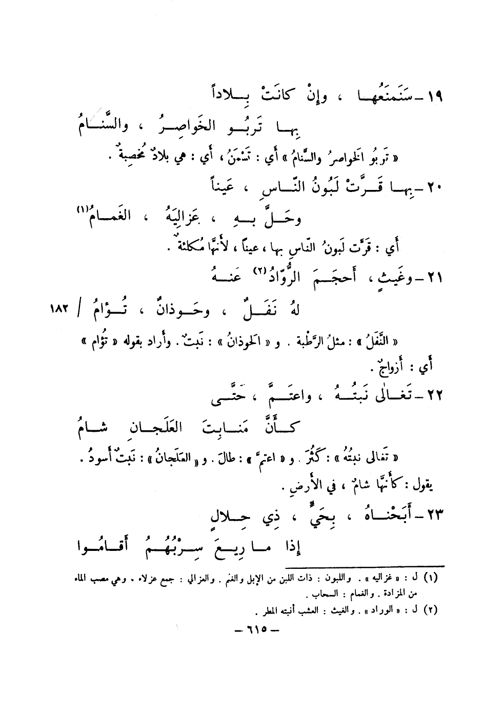 "والنفل": مثل الرطبة. و"الخوذان": نبتٌ. وأراد بقوله "تؤام" أي: أزواجٌ.