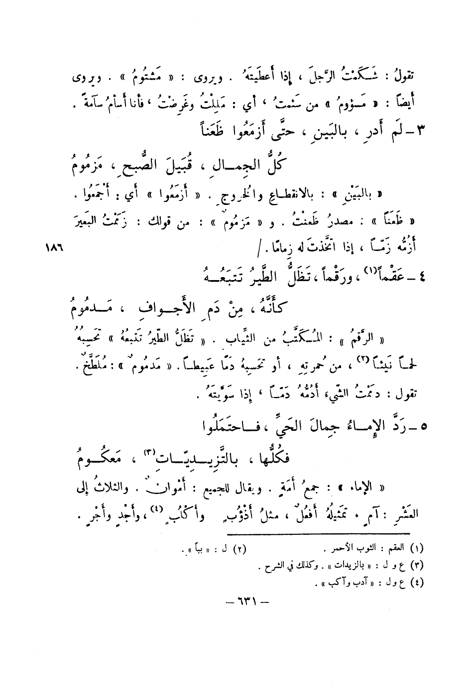 "بالبين": بالانقطاع أو الخروج. "أزمعوا" أي: أجمعوا. "ظعناً": مصدر ظعنت. و"مزموم": من قولك: زممت البعير أزمه زماً، إذا اتخذت له زماماً.