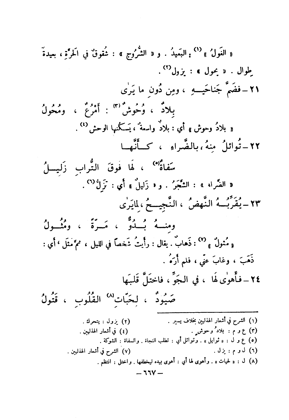 الوغل: البعيد. و"الشروج": شقوق في الحرة، بعيدةٌ طوال. "يحول": يزول