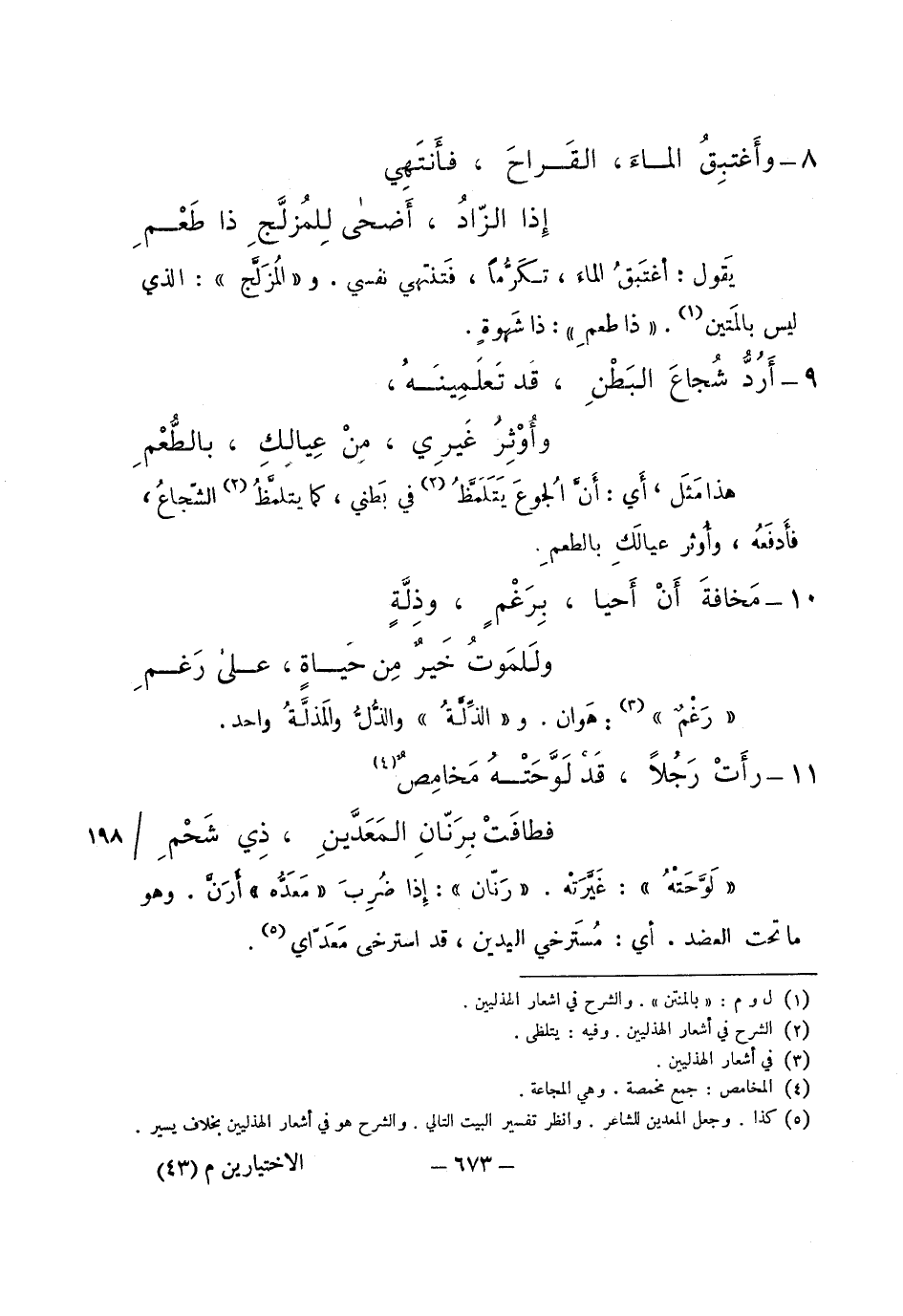 8 ... وأغتبق الماء، القراح، فأنتهي