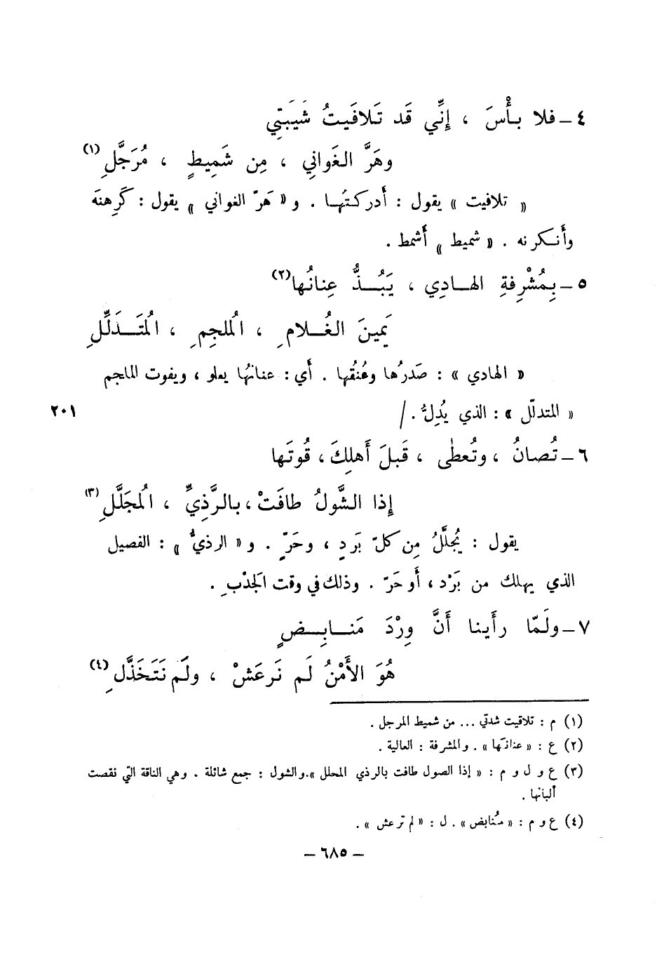 "تلافيت" يقول: أدركتها. و"هر الغواني" يقول: كرهته وأنكرنه. "شميط" أشمط.