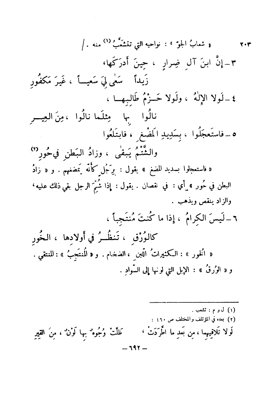 "فاستعجلوا بسديد المضغ" يقول: برجلٍ كأنه يمضغهم. و"زاد البطن في حور" أي: في نقصان. يقول: إذا شتم الرجل بقي ذلك عليه، والزاد ينقص ويذهب.
