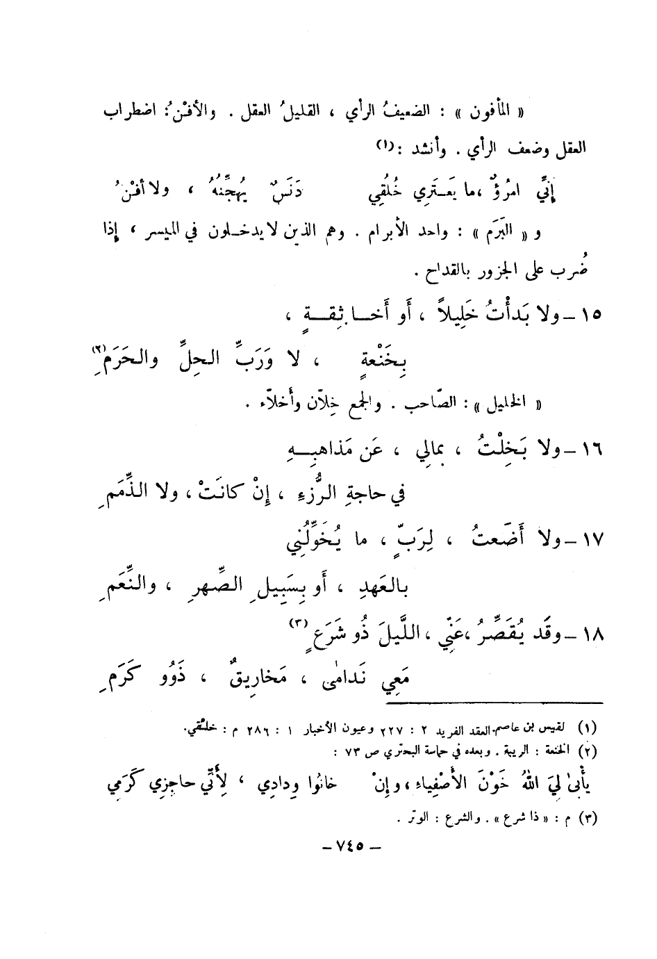 16 ... ولا بخلت، بمالي، عن مذاهبه