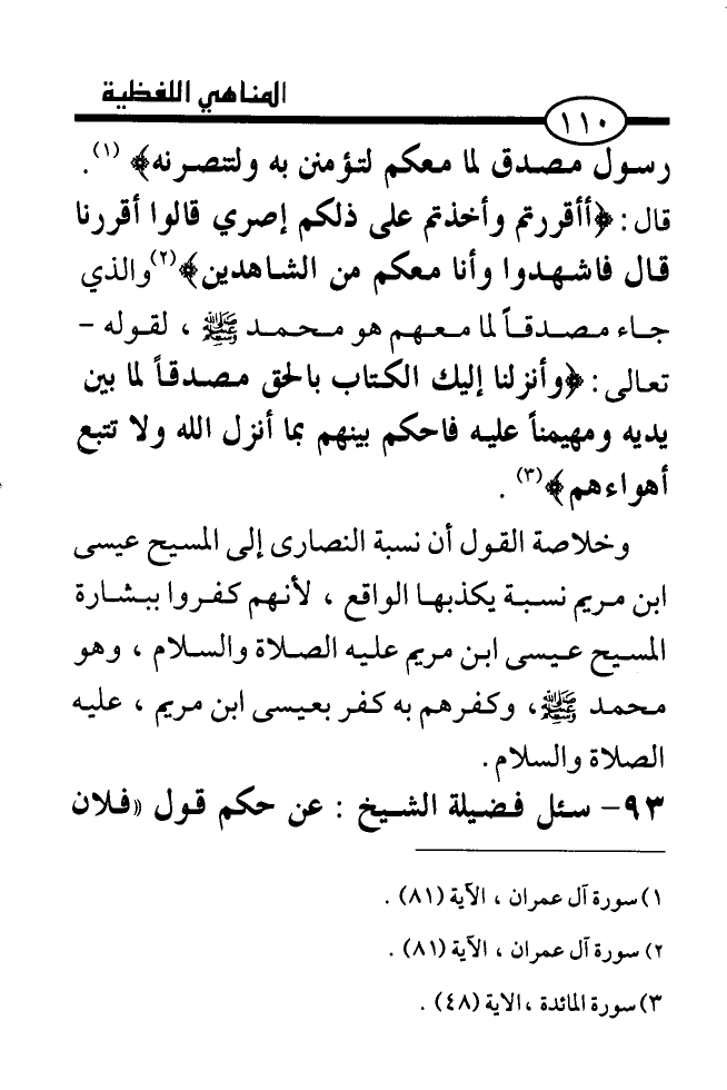93. ... سئل فضيلة الشيخ: عن حكم قول (فلان
