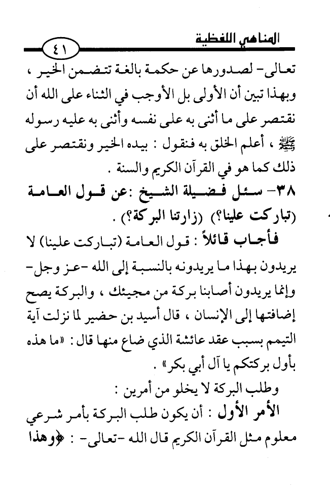 38. ... سئل فضيلة الشيخ: عن قول العامة (تباركت علينا؟) (زارتنا البركة؟) .