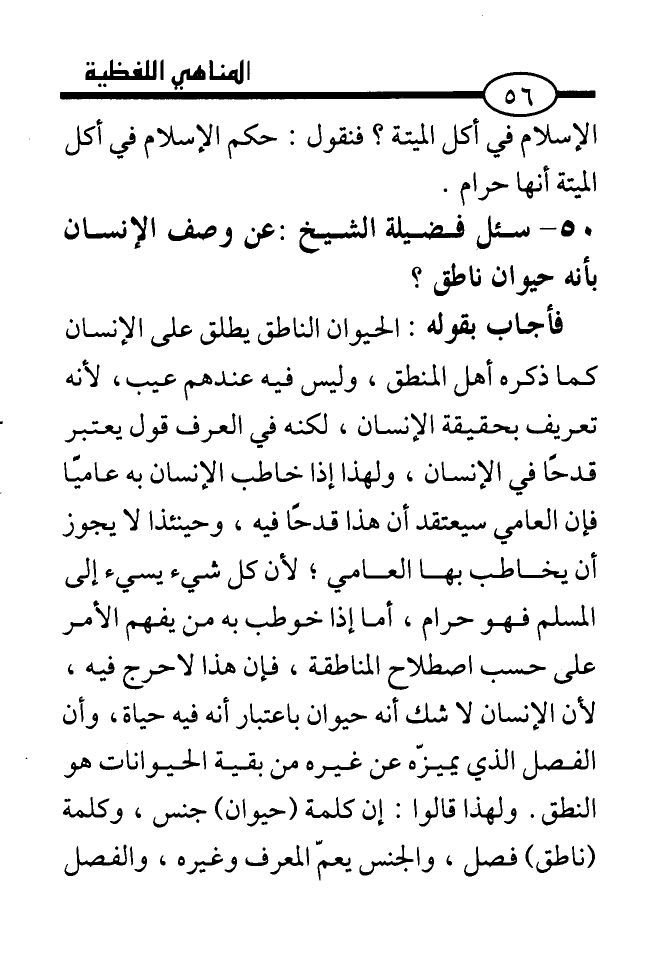 50. ... سئل فضيلة الشيخ: عن وصف الإنسان بأنه حيوان ناطق؟