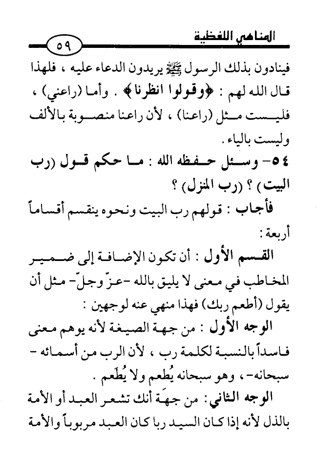 54. ... وسئل حفظه الله: ما حكم قول (رب البيت) ؟ (رب المنزل) ؟