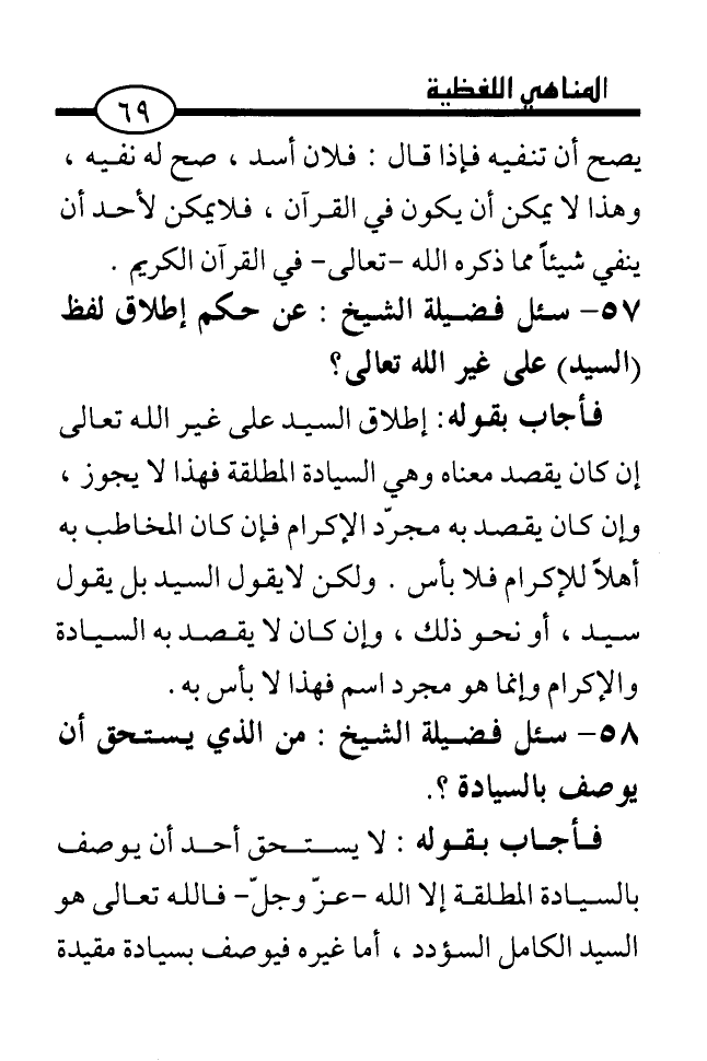 57. ... سئل فضيلة الشيخ: عن حكم إطلاق لفظ (السيد) على غير الله تعالى؟ .