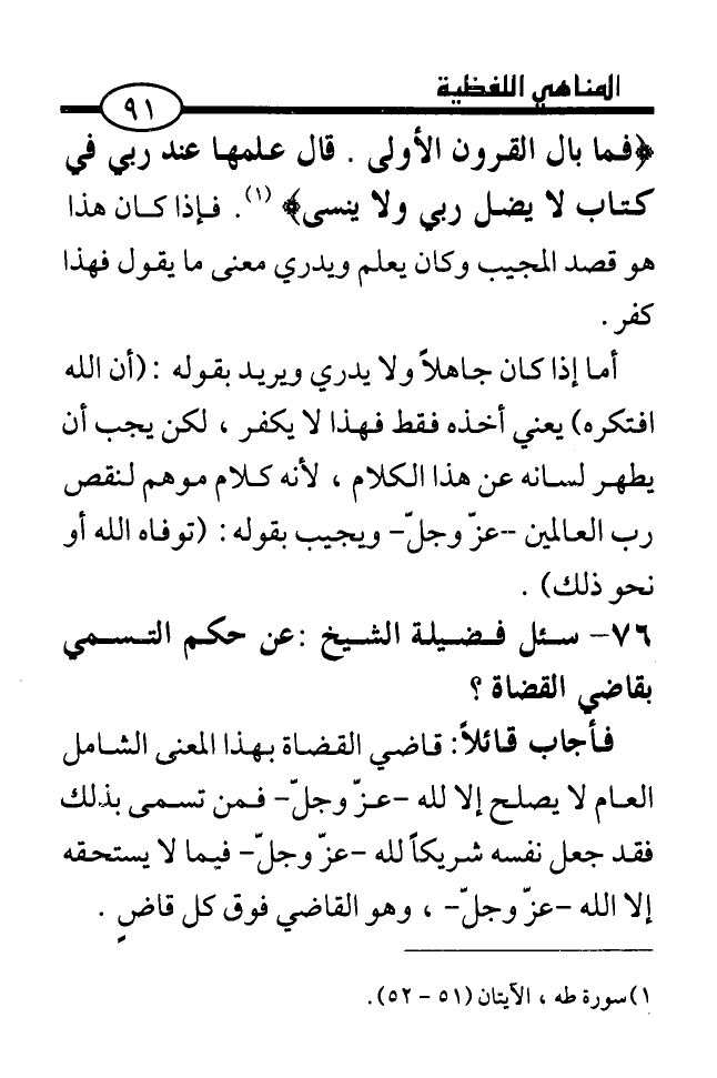 76. ... سئل فضيلة الشيخ: عن حكم التسمي بقاضي القضاة؟ .