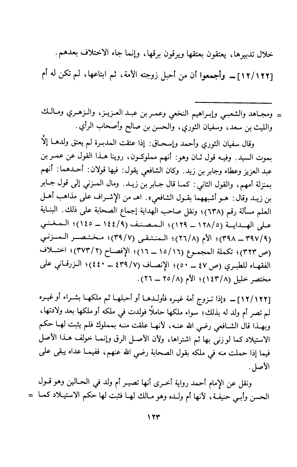 [122/ 12]- وأجمعوا أن من أحبل زوجته الأمة، ثم ابتاعها، لم تكن له أم