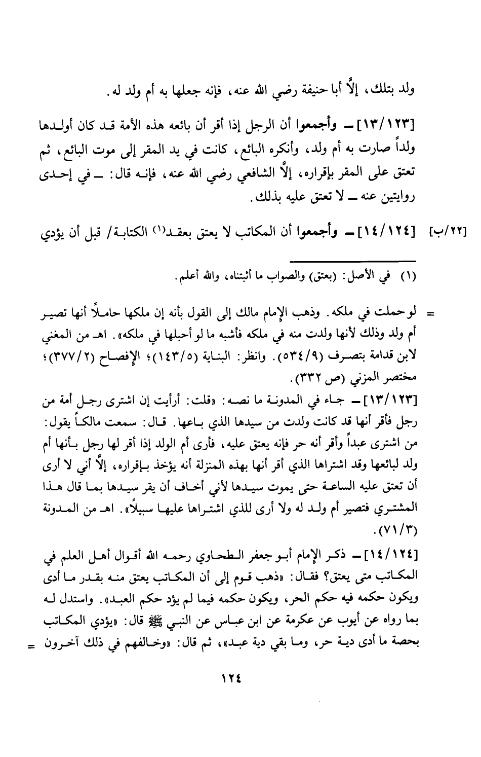 [124/ 14]- وأجمعوا أن المكاتب لا يعتق بعقد الكتابة قبل أن يؤدي