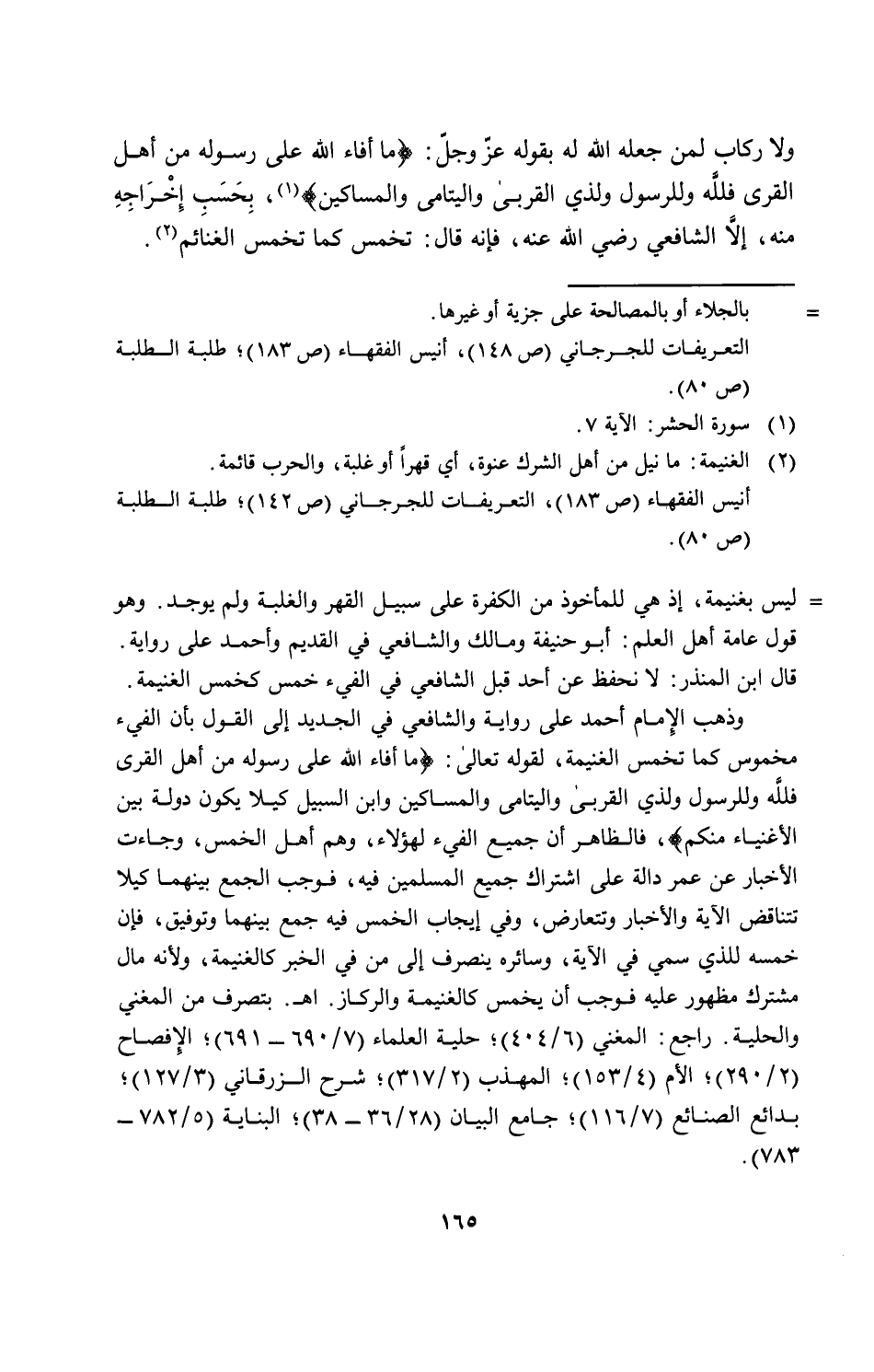 ولا ركاب لمن جعله الله له بقوله عزّ وجلّ: {ما أفاء الله على رسوله من أهل القرى فلله وللرسول ولذي القربى واليتامى والمساكين}، بِحَسَبِ إخرَاجِهِ منه، إلا الشافعي رضي الله عنه، فإنه قال: تخمس كما تخمس الغنائم.