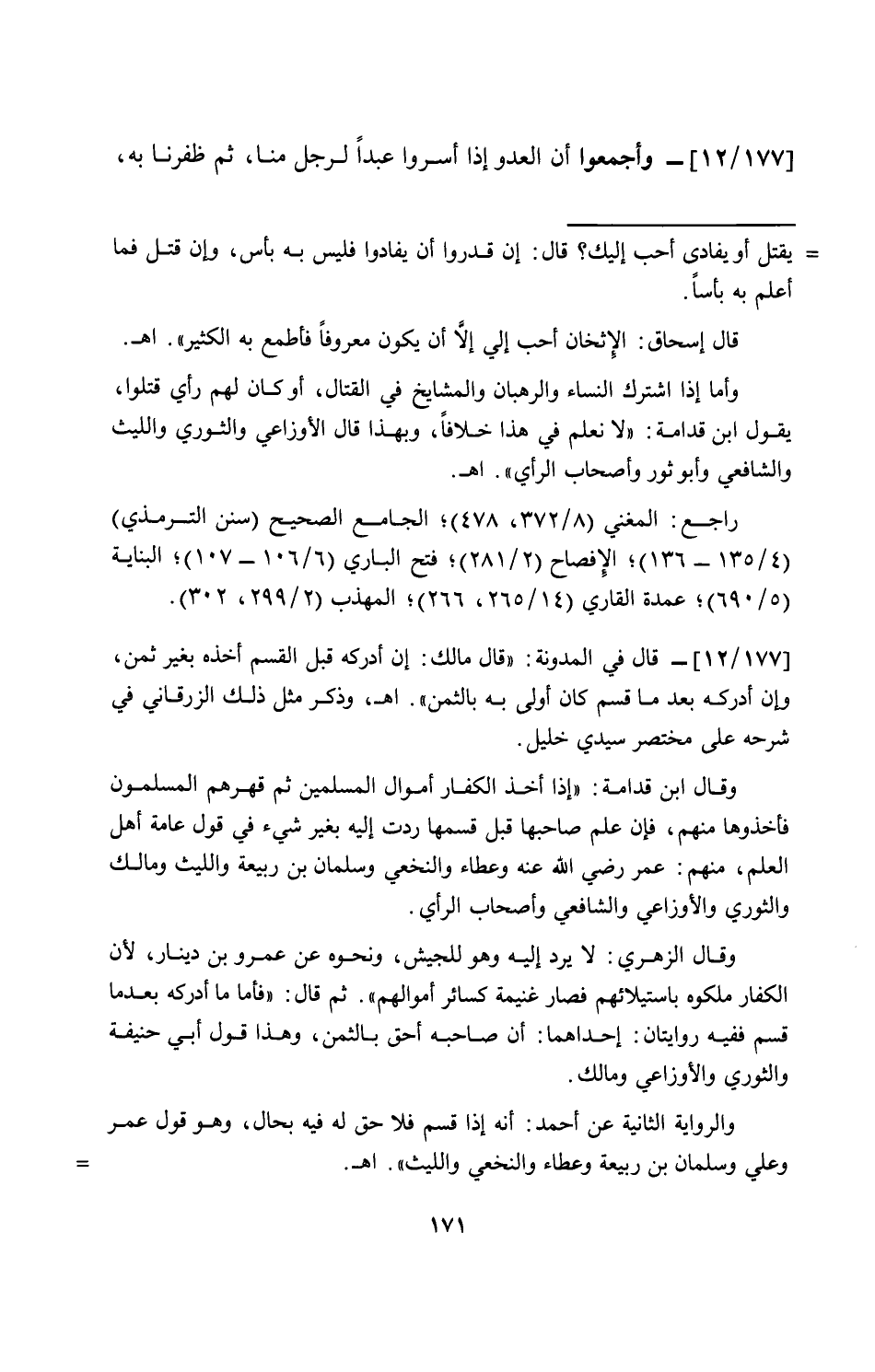 ] 177/ 12 [- وأجمعوا أن العدو إذا أسروا عبداً لرجل منا، ثم ظفرنا به،