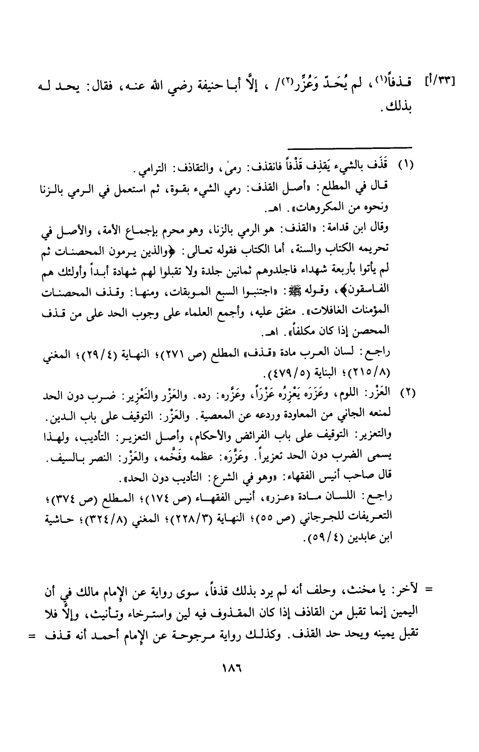 قذفاً، لم يُحَدّ وعُزِّر/، إلا أبا حنيفة رضي الله عنه، قال: يحد له بذلك.