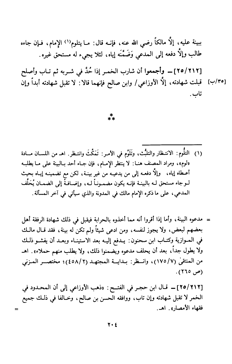 [212/ 25]- وأجمعوا أن شارب الخمر إذا حُدَّ في شربه ثم تاب وأصلح قبلت شهادته، إلا الأوزاعي / وابن صالح فإنهما قالا: لا تقبل شهادته أبدًا وإن تاب.