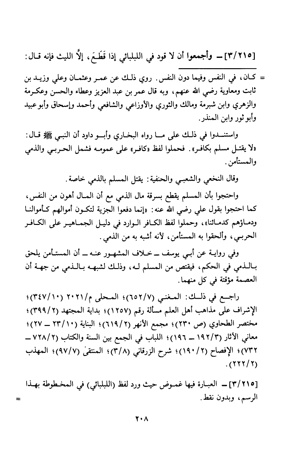 [215/ 3]- وأجمعوا أن لا قود في اللبلبائي إذا قَطَع، إلا الليث فإنه قال: