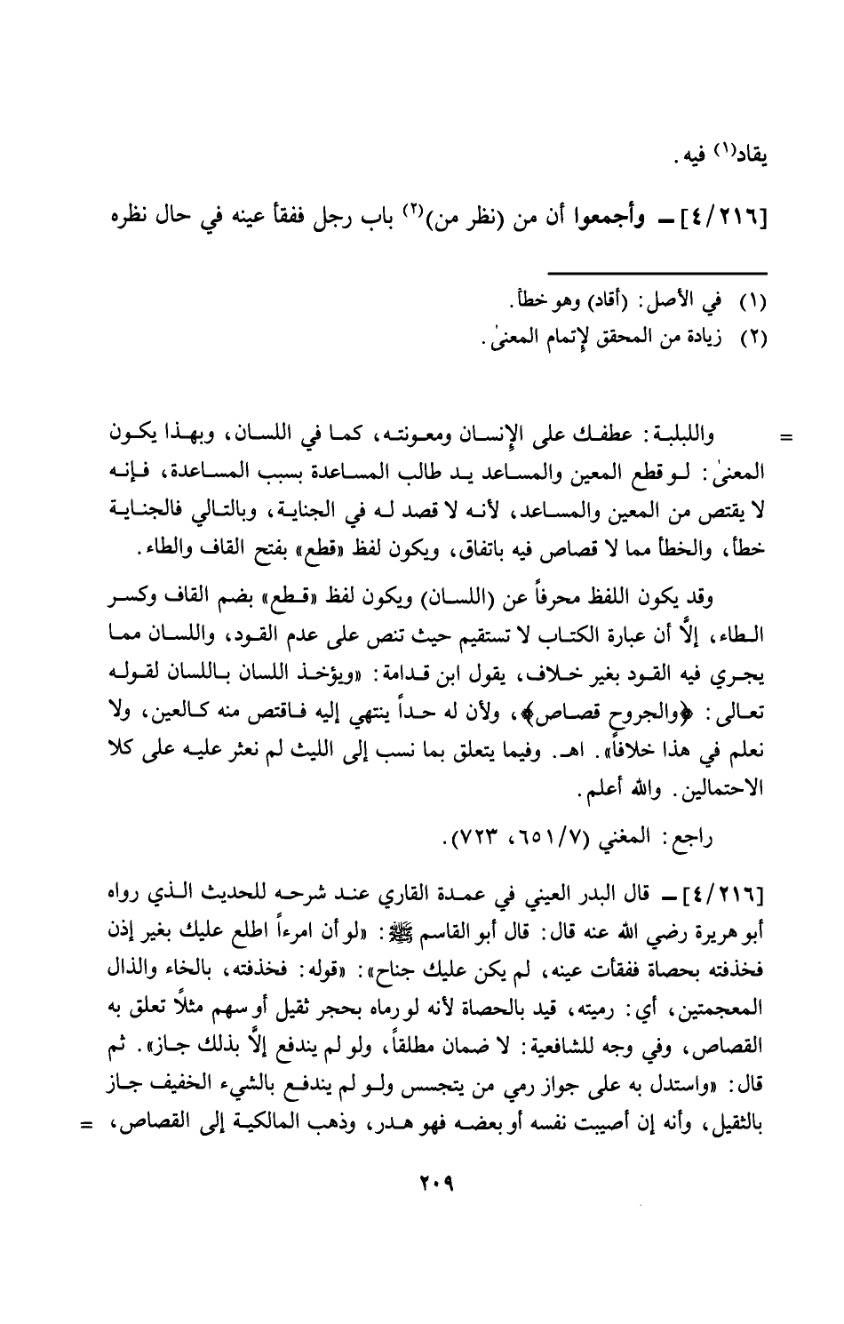 [216/ 4]- وأجمعوا أن من (نظر من) باب رجل ففقأ عينه في حال نظره