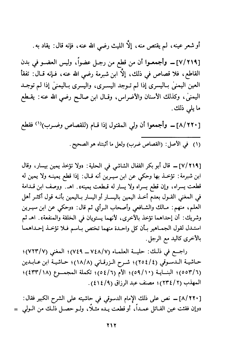 [220/ 8]- وأجمعوا أن ولي المقتول إذا قام (للقصاص وضرب) فقطع