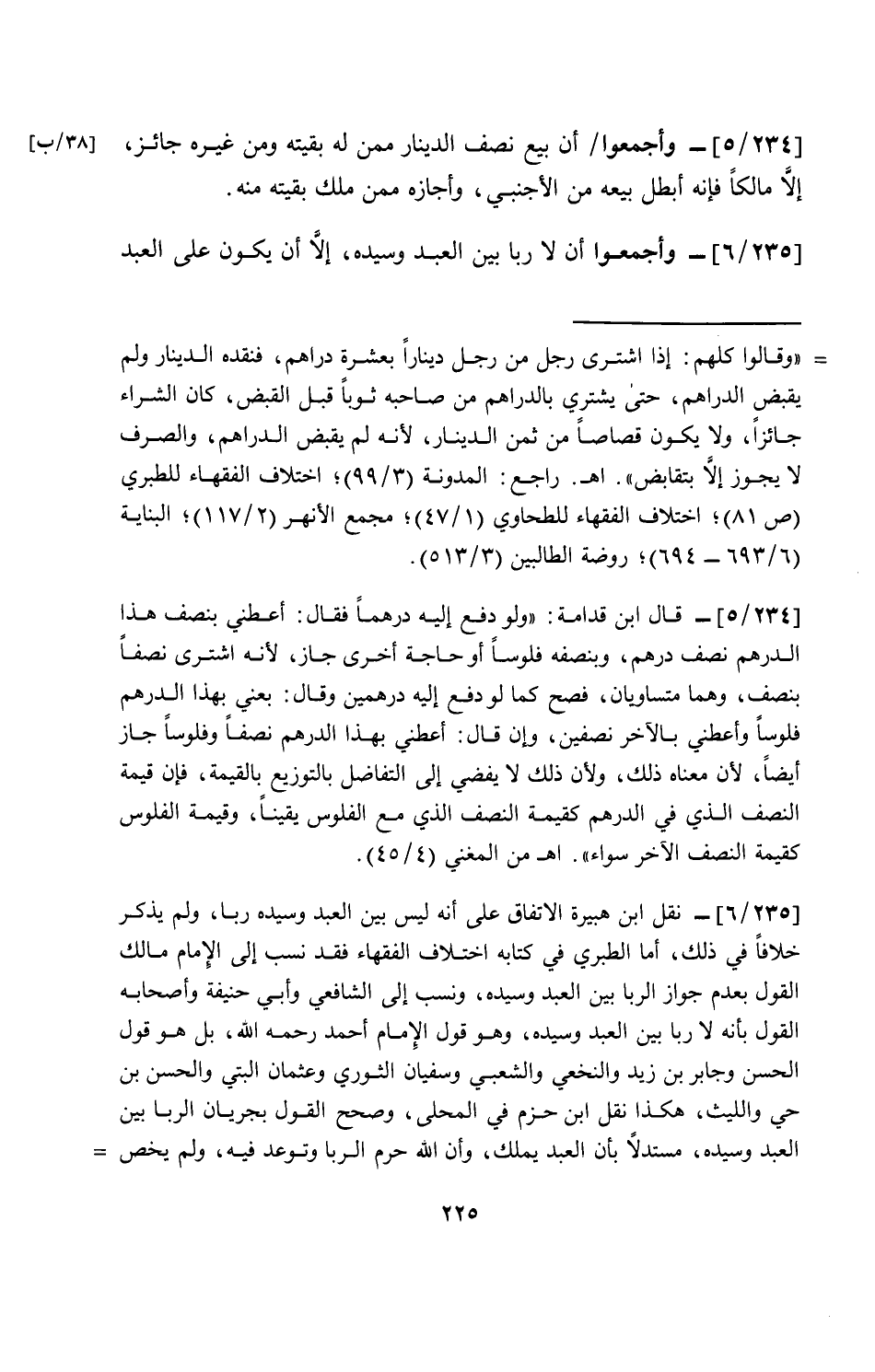 [235/ 6]- وأجمعوا أن لا ربا بين العبد وسيده، إلا أن يكون على العبد