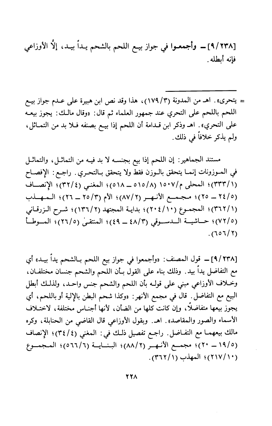 [238/ 9]- وأجمعوا في جواز بيع اللحم بالشحم يدًا بيد، إلا الأوزاعي فإنه أبطله.