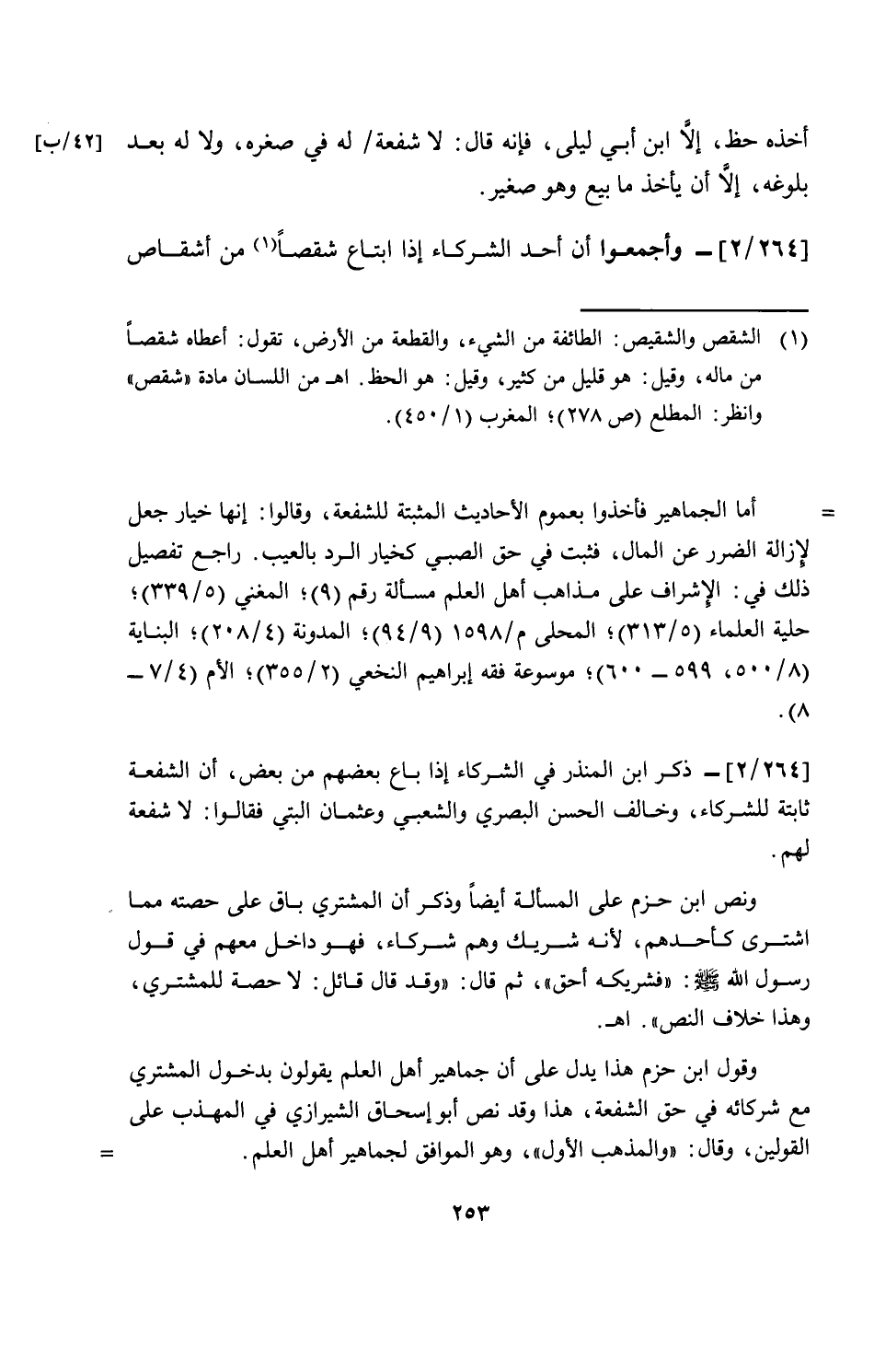 [264\ 2]- وأجمعوا أن أحد الشركاء إذا ابتاع شقصاً من أشقاص