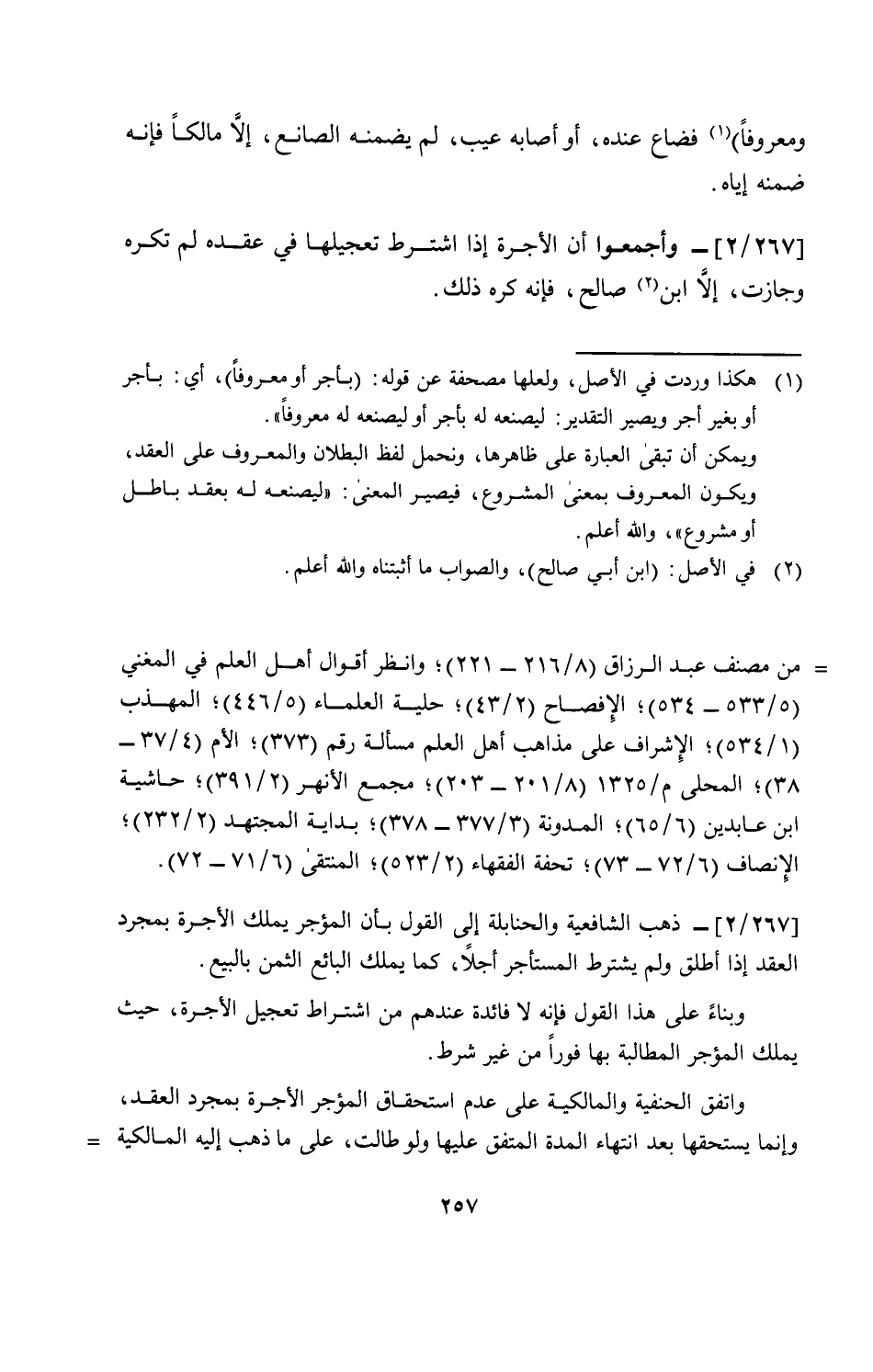 [267\ 2]- وأجمعوا أن الأجرة إذا اشترط تعجيلها في عقده لم تكره وجازت، إلا ابن صالح، فإنه كره ذلك.