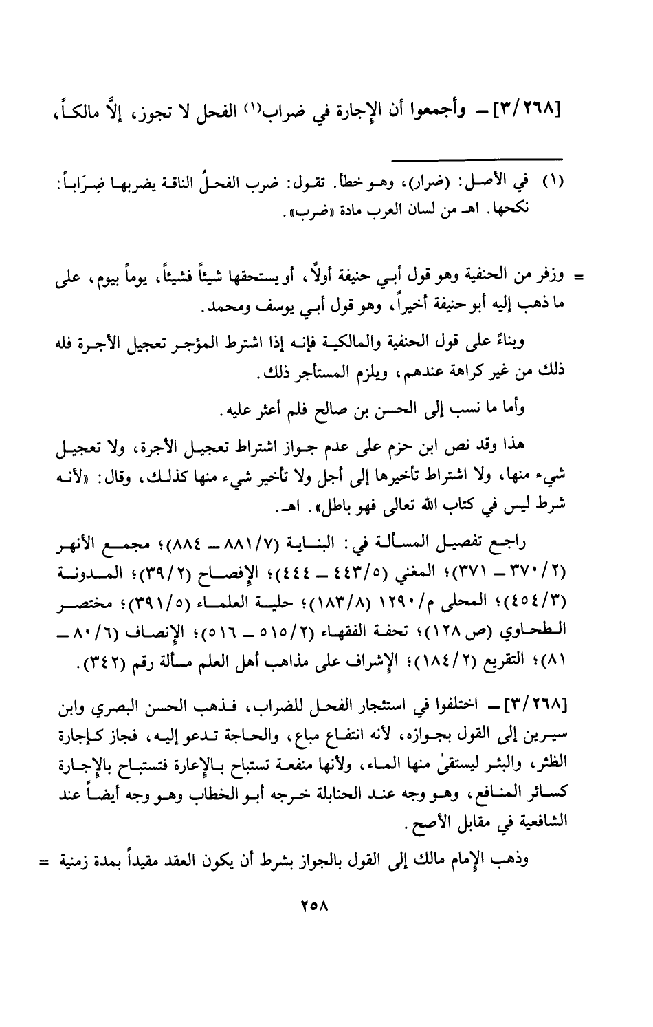[268\ 3]- وأجمعوا أن الإجارة في ضراب الفحل لا تجوز، إلا مالكاً،