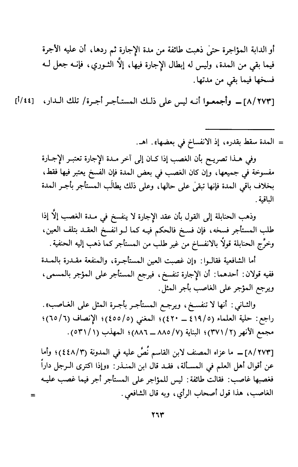 [273\ 8]- وأجمعوا أنه ليس على ذلك المستأجر أجرة\ تلك الدار،