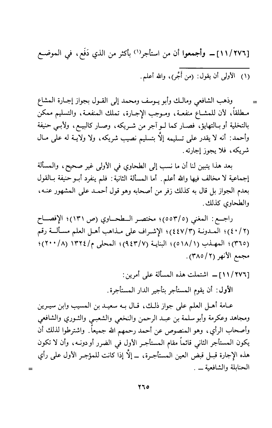 [276\ 11]-وأجمعوا أن من استأجر بأكثر من الذي دفع، في الموضع