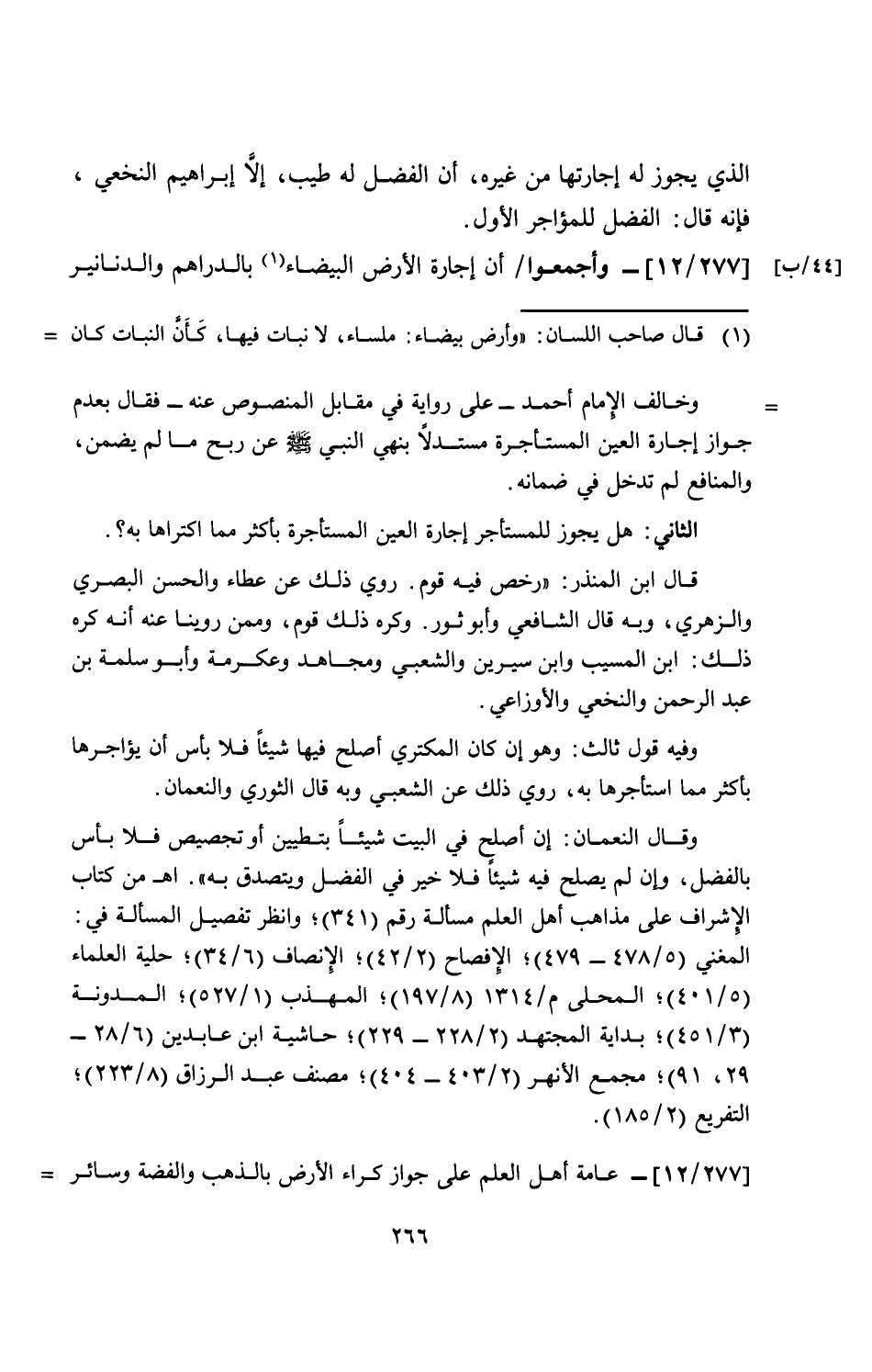 [277\ 12]- وأجمعوا\ أن إجارة الأرض البيضاء بالدراهم والدنانير