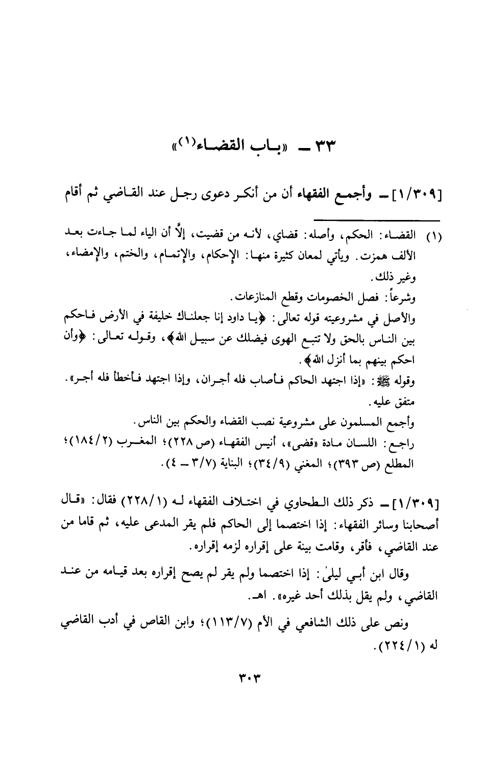 [309/ 1]- وأجمع الفقهاء أن من انكر دعوى رجل عند القاضي ثم أقام