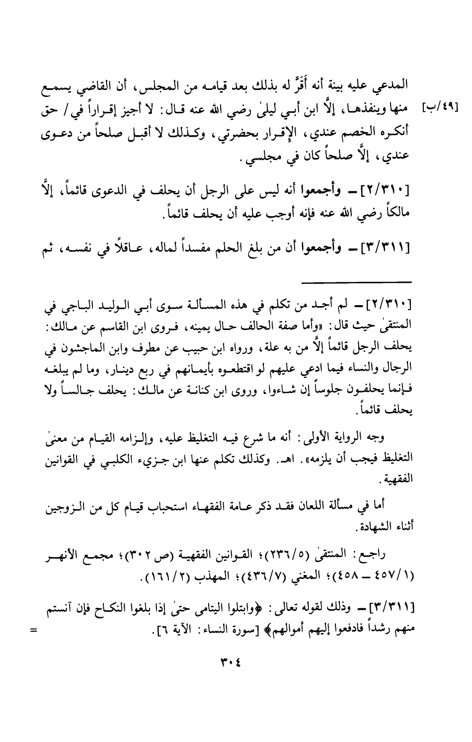 [310/ 2]- وأجمعوا أنه ليس على الرجل أن يحلف في الدعوى قائماً، إلاَّ مالكاً رضي الله عنه فإنه أوجب عليه أن يحلف قائماً.
