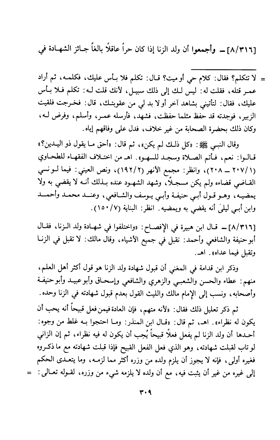 [316/ 8]- وأجمعوا أن ولد الزنا إذا كان حراً عاقلاً بالغاً جائز الشهادة في