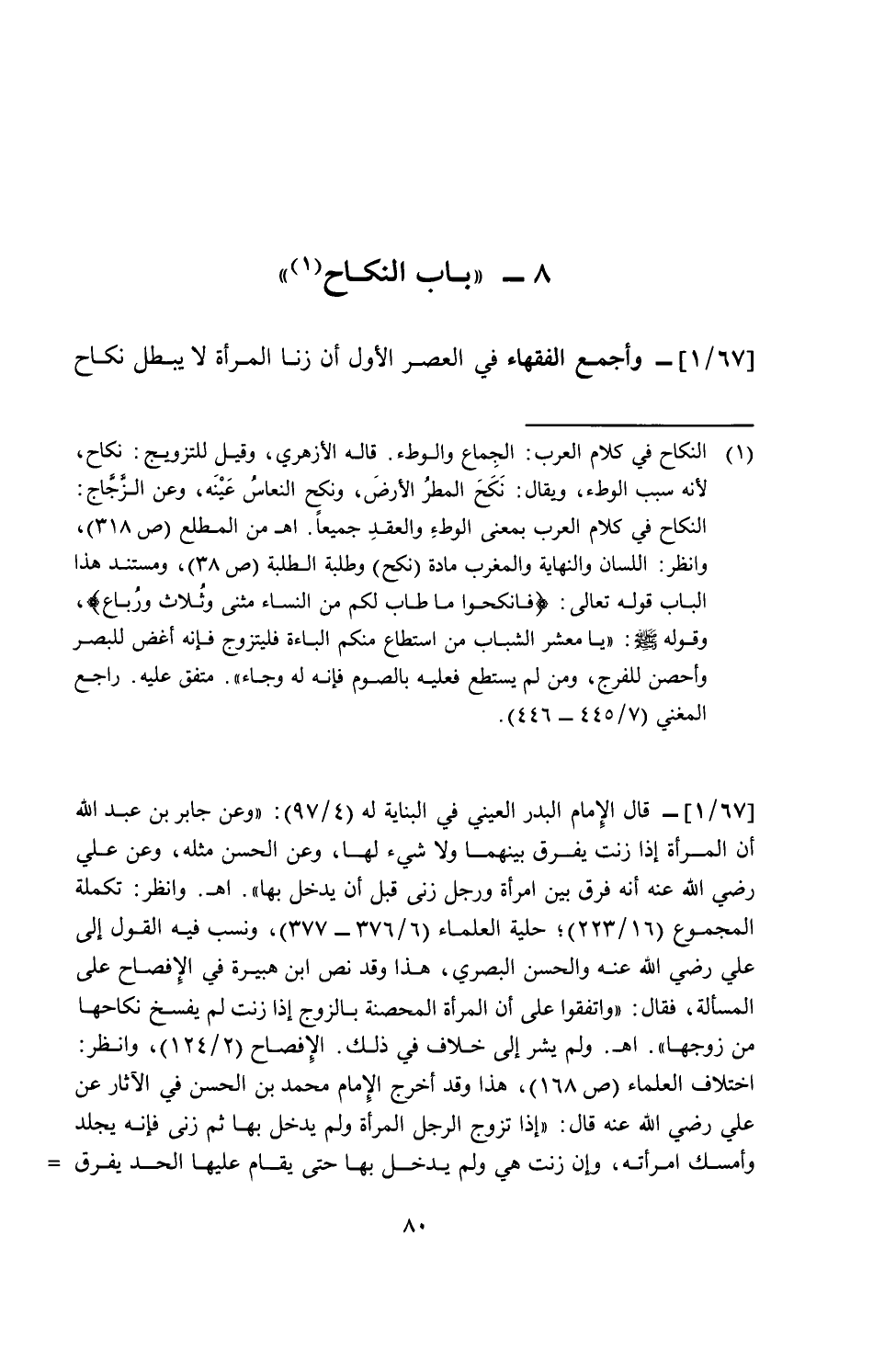 [67/ 1]- وأجمع الفقهاء في العصر الأول أن من زنا المرأة لا يبطل نكاح