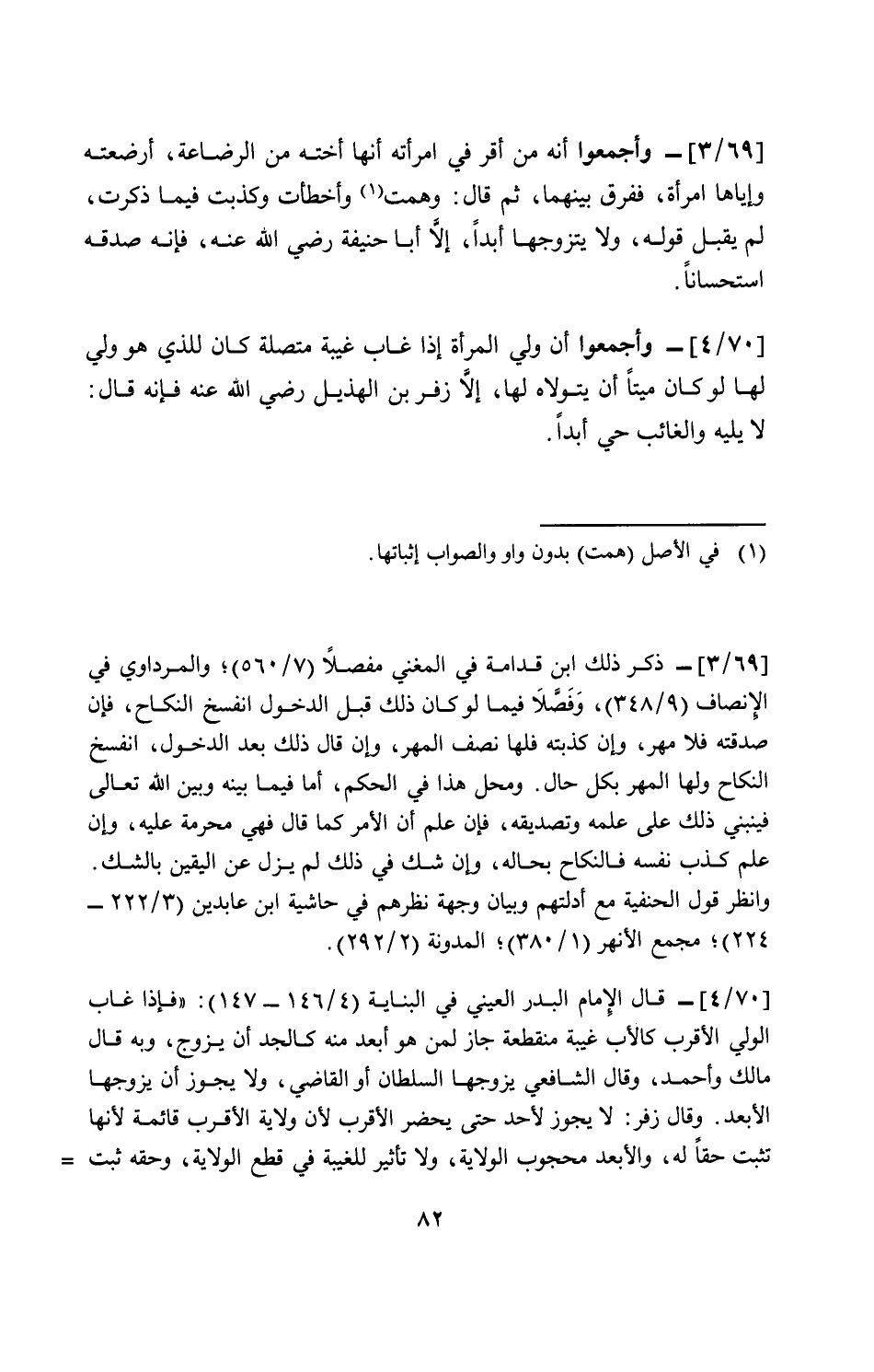 [70/ 4]- وأجمعوا أن ولي المرأة إذا غاب غيبة متصلة كان للذي هو ولي لها لو كان ميتا أن يتولاه لها، إلا زفر بن الهذيل رضي الله عنه فإنه قال: لا يليه والغائب حي أبداً.