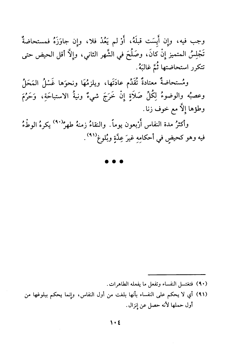 واكثر مُدَّة النّفاس اربعون يَوْمًا والنقاء زَمَنه طهر يكره الْوَطْء فِيهِ وَهُوَ كحيض فِي احكامه غير عدَّة وبلوغ