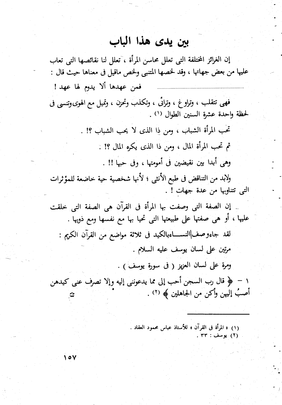 وَلَا بُد من التَّنَاقُض فِي طبع الْأُنْثَى لِأَنَّهَا شخصية حَيَّة خاضعة للمؤثرات الَّتِى تتناوبها من عدَّة جِهَات
