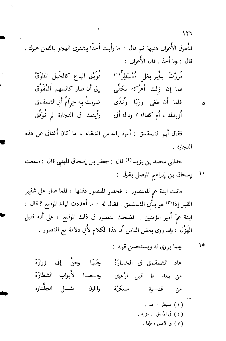 فقال أبو الشمقمق: أعوذ بالله من الشقاء، ما كان أغناني عن هذه التجارة.