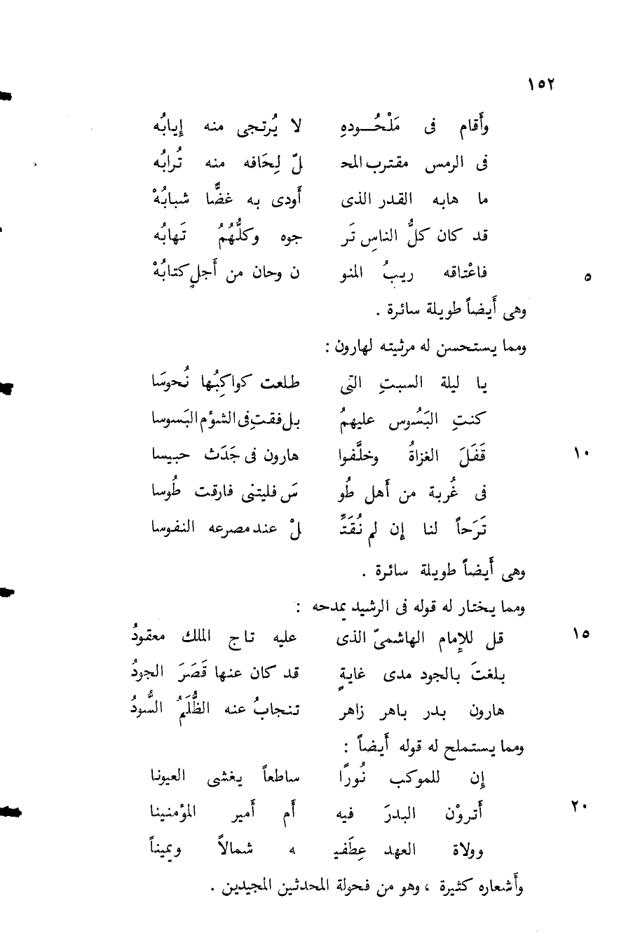 وأشعاره كثيرة، وهو من فحولة المحدثين المجيدين.