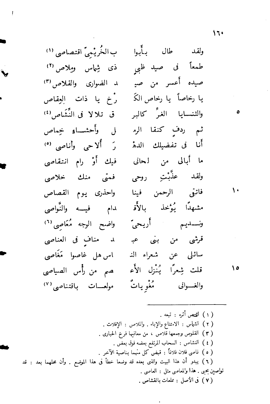 ولقد طال بأبوا ... ب الخريمي اقتصاصي
