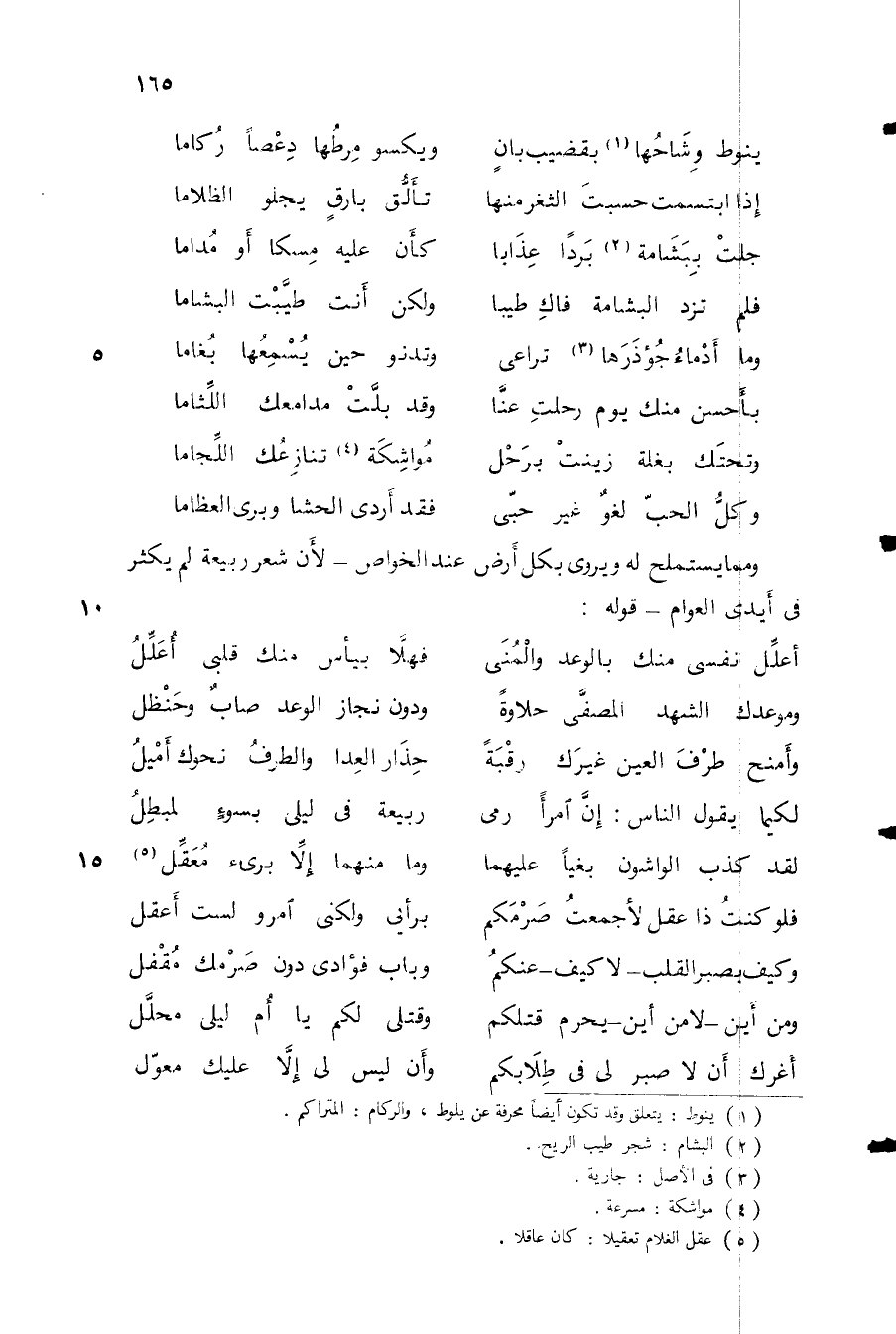 ومما يستملح له ويروي بكل أرض عند الخواص - لأن شعر ربيعة لم يكثر في أيدي العوام - قوله: