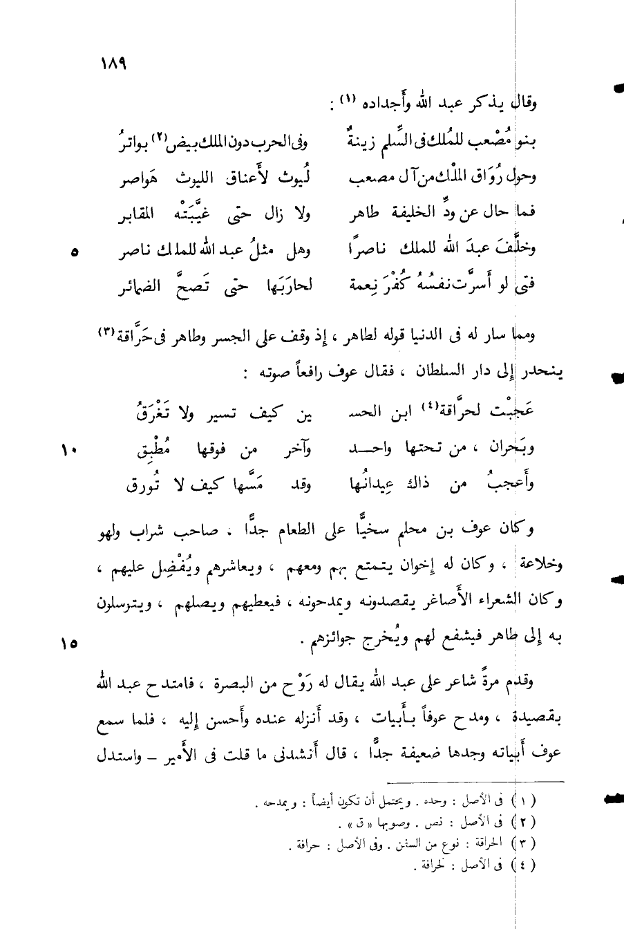 ومما سار له في الدنيا قوله الطاهر، إذ وقف على الجسر وطاهر في حراقة ينحدر إلى دار السلطان، فقال عوف رافعاً صوته: