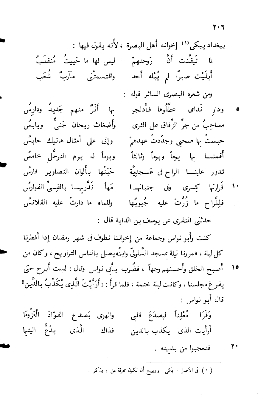 ببغداد يبكي إخوانه أهل البصرة، لنه يقول فيها: